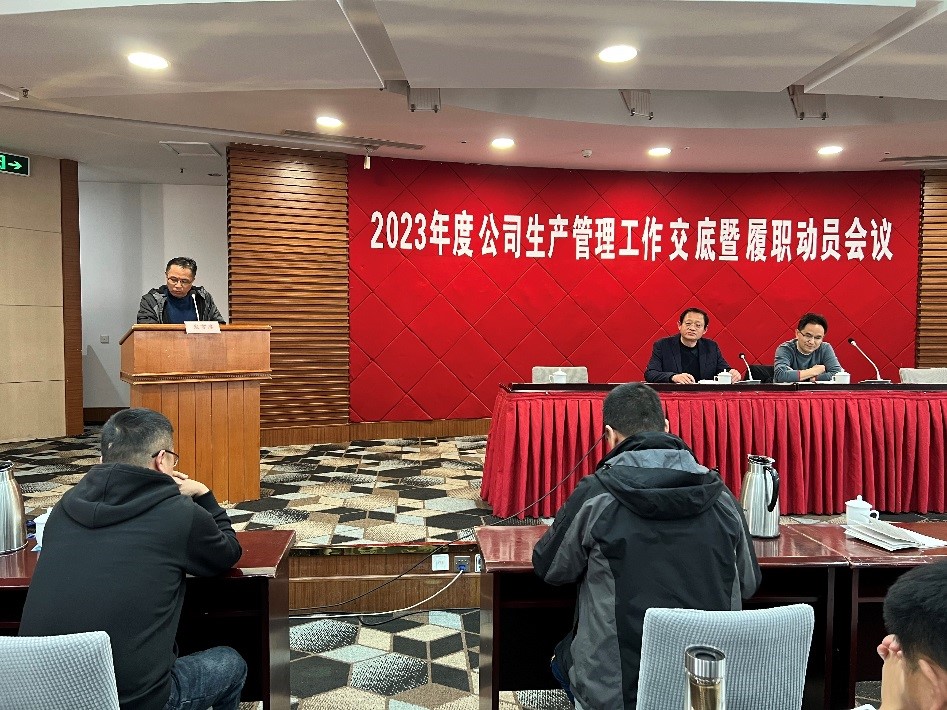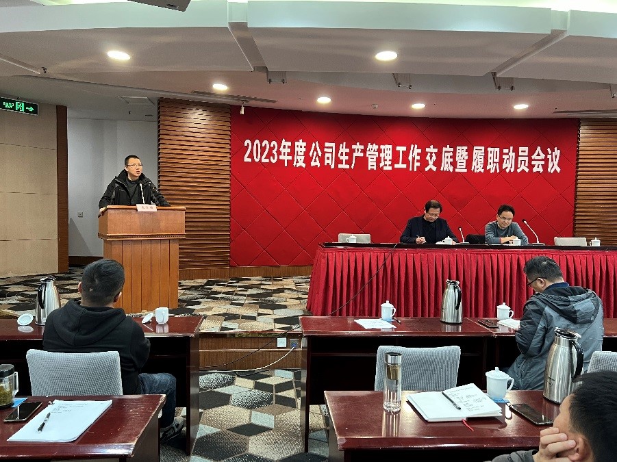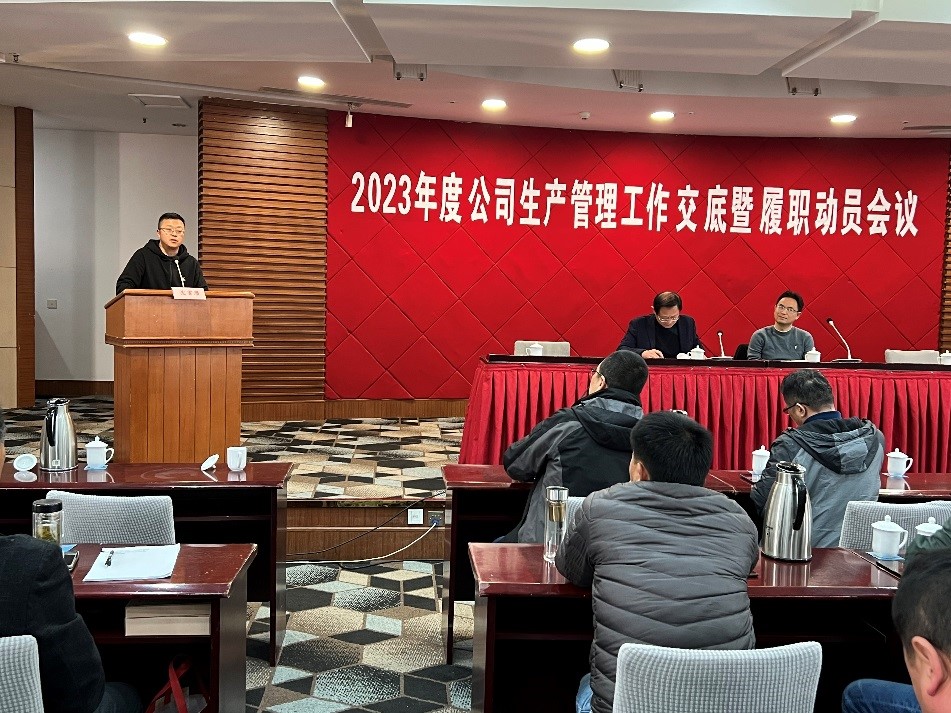 公司總經理黃勇介紹分析了當前公司生產管理中存在的問題,對2023年的工作作了具體部署。會議宣布了對吉雄鳴、張佐祥及龔文達的人事任命,三位同志分別進行就職表態發言。